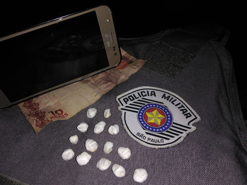 O jovem estava abaixado atrás de um pequeno arbusto na calçada, mexendo em um celular e não percebeu a aproximação da viatura, dificultando sua fuga do local. Durante uma busca pessoal, 14 pedras de crack foram encontradas na boca do adolescente e uma quantia em dinheiro no valor de R$ 10,00, que ele admitiu ser proveniente da comercialização da droga, tendo em vista que havia acabado de pegar um kit de crack contendo 15 porções, de uma pessoa do Jardim Fortaleza, e vendido apenas uma das porções.