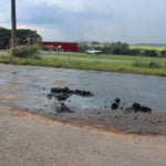Na quadra seguinte, na rua Altino Gadiani próximo à avenida Sargento Cassiano, o esgoto borbulhava de um buraco recém tampado pelas equipes da prefeitura. A água empoçava pelo meio fio e pela avenida. A cada veículo que passava pela via, era água fedida para todos os lados.