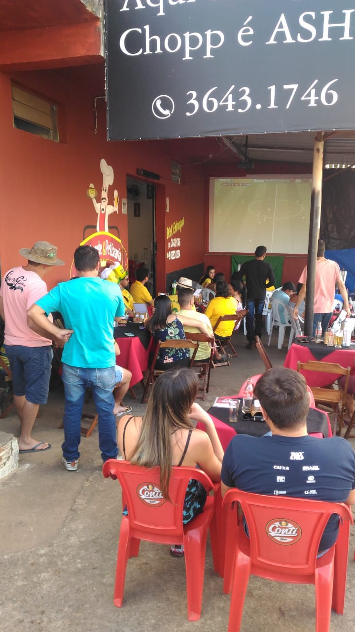 Na Império Choperia, o pessoal se reuniu para acompanhar o jogo. A torcedora Marcela foi a sorteada com uma camiseta réplica da camisa da seleção.