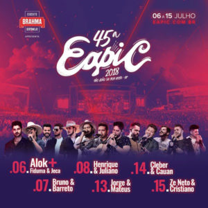 No dia 14, sábado, Cleber e Cauan cantam para o público e, encerrando a 45ª Eapic, Zé Neto e Cristiano fazem o show do domingo, dia 15.