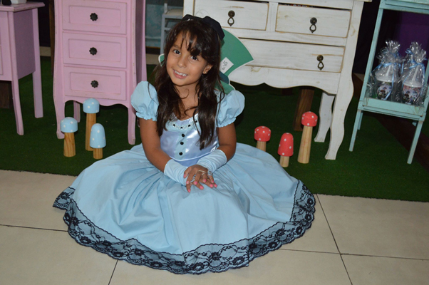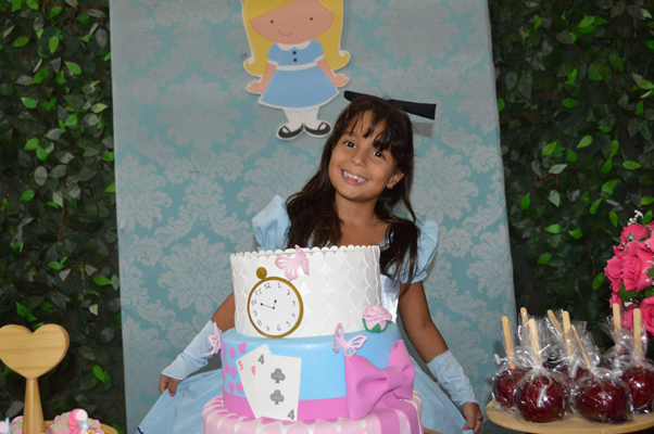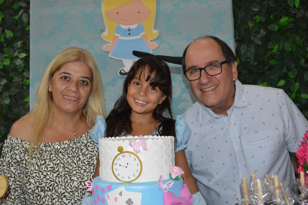 O 7º aniversário de Emilly Sartini foi comemorado na quinta-feira, dia 2, no Buffet Pipoca Doce, decorado com o tema Alice no País das Maravilhas, onde recebeu o carinho especial dos pais Cleide e Ademar. Fotos: Curta Aqui