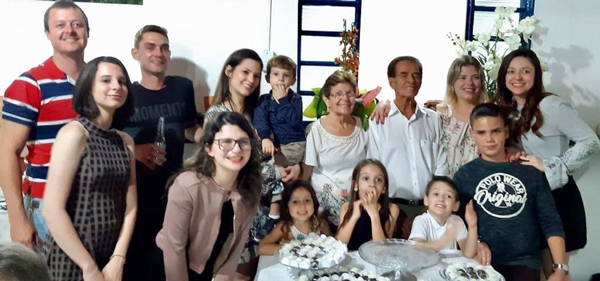 O casal Hilda e Alcides Cassiano comemorou 60 anos de casamento no dia 28 de maio, ao lado dos filhos Ivete, Zilda, Marcos, Márcia e Patrícia, dos genros Paulo, Sandro, Willian e Eduardo, da nora Elaine, dos 10 netos e dois bisnetos. Fotos: Arquivo Pessoal