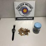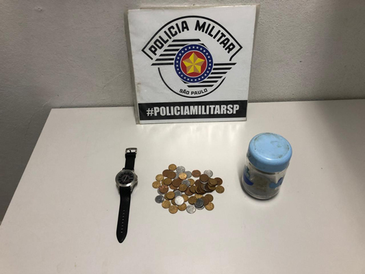 Os PMs foram até o local e localizaram um rapaz de 22 anos e o dono da residência, o qual informou que na terça-feira, dia 9, o rapaz adentrou em sua residência arrombando a janela do quarto e no dia seguinte, na quarta-feira, arrombou a porta da cozinha, subtraindo um relógio de pulso, um pote com diversas moedas em seu interior.