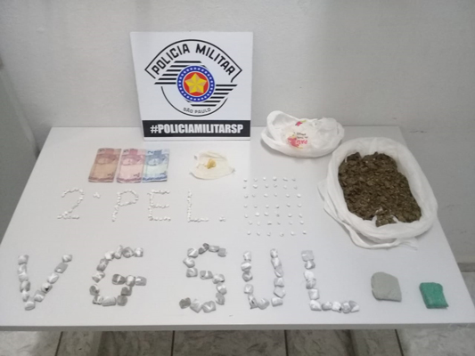 A Polícia Militar de Vargem Grande do Sul prendeu uma pessoa em flagrante na tarde do sábado, dia 24, com muitas porções de maconha e crack. A ação foi realizada pela equipe formada pelo sargento Márcio e os soldados Salomão e Belchior.