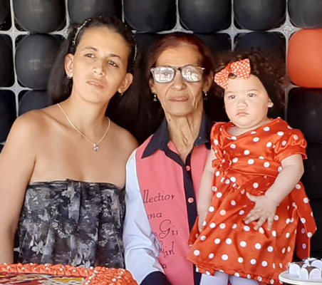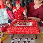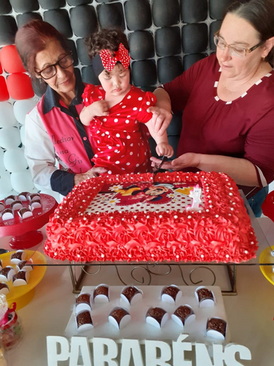 Antônia Fernanda de Oliveira soprou sua primeira velinha na última quarta-feira, dia 28, quando foi o centro das atenções da mãe Tamires e da avó Antônia, juntas na foto, do Bruno Henrique, demais familiares e amigos. Foto: Arquivo Pessoal