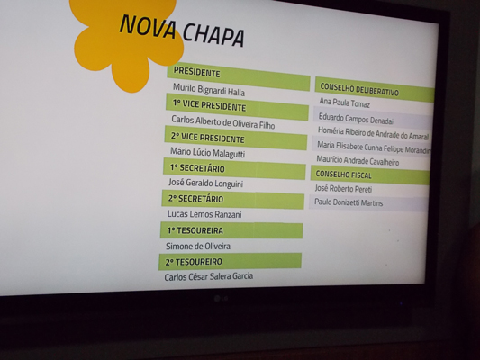 Também foram apresentados os membros da nova diretoria, que tem como presidente o empresário Murilo Bignardi Halla; como vice-presidentes, Carlos Alberto de Oliveira Filho e Mário Lúcio Malagutti; como 1º secretário, José Geraldo Longuini; como 2º secretário, Lucas Lemos Ranzani; como 1ª tesoureira, Simone de Oliveira; e como 2º tesoureiro, Carlos César Salera Garcia. O Conselho Deliberativo contará com Homéria Ribeiro de Andrade do Amaral, Maria Elisabete Cunha Felippe Morandin, Eduardo Campos Denadai, Maurício Andrade Cavalheiro e Ana Paula Tomaz. O Conselho Fiscal é composto por Paulo Donizetti Martins e José Roberto Pereti.