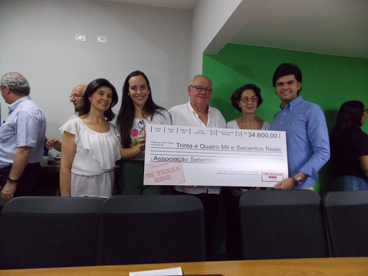 O arquiteto Vinícius Mascarin também marcou presença na inauguração e fez a entrega simbólica dos R$ 34.600,00 doados a Associação Setembro, os quais foram arrecadados durante o seu evento beneficente, o 2º VM Texas BBQ.