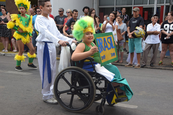 Fizeram parte do desfile a Fanfarra da Escola D. Pedro II, seguidos do Demolay, a Escola Estadual Alexandre Fleming, o grupo de Escoteiros Curumins da Mantiqueira e as creches municipais Irmã Gertrudes, Alice Giovanelli João, Virgínia Ruiz, Dona Cezarina, Geraldo Cara Rinaldi, Padre Donizetti e Zinha Cordeiro, a Escola Estadual Gilberto Giraldi, Escola Nova Era e Escola Estadual Benjamin Bastos, as escolas Municipais Henrique de Brito Novaes, Darci Troncoso Peres, Mário Beni, Antônio Coury, Nair Bolonha, Francisco Ribeiro Carril e Padre Donizetti, Escola Estadual José Gilberto, ETEC, o Projeto Tio Carlão, em homenagem a Carlos César, que sempre participou do evento, Escola Estadual Prof. Achiles Rodrigues, o Centro de Convivência do Idoso, Chalck School e o grupo de dança Time Of Destruction.