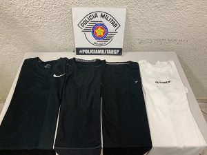 Ao ser questionado pelos PMs sobre a camiseta que vestia, ele disse que havia comprado de um amigo junto à outras peças pelo valor de R$ 40,00. Esse amigo também é conhecido nos meios policiais e tendo sido, inclusive, preso junto ao suspeito certa vez por praticarem furtos pela cidade.