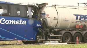 Segundo a matéria o acidente aconteceu no km 208 da Anhanguera e o ônibus da Viação Cometa saiu de Franca e ia para Campinas. De acordo com o a Polícia Rodoviária cerca de 5 mil litros de etanol vazaram e para evitar uma explosão, o Corpo de Bombeiros isolou a área e jogou espuma. “Quando o tanque está cheio, ele tem menos risco de explosão do que quando está vazio, porque o que explode não é o líquido, é o gás que o líquido libera”, explicou o sargento Marcos Roberto Ferreira ao G1.