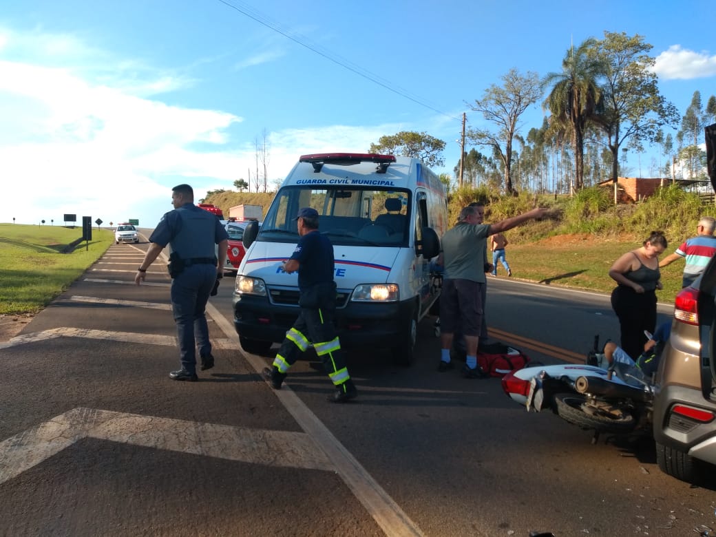 A motocicleta era conduzida pelo condutor identificado como Carlos Donizeti Ferreira, de 42 anos, que levada um passageiro em sua garupa. O motociclista foi socorrido pela GCM com fratura exposta no fêmur esquerdo e levado ao Hospital de Caridade. O carona, foi atendido pelo Serviço de Atendimento Móvel de Urgência (Samu) com ferimentos e também levado ao Hospital de Caridade. A Gazeta ainda não obteve o nome do passageiro.
