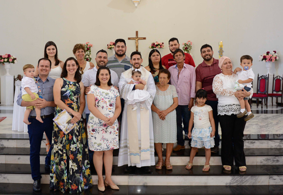 Gabriela Expósito Manzotti, filha de Rafaela Gonçalves Expósito e Roger Manzotti, recebeu o sacramento do batismo em cerimônia celebrada no último domingo, dia 27, pelo padre Dênis na Igreja Matriz de Sant’Ana, tendo como padrinhos Bianca e Germano e de consagração Cecilia e Regis. Fotos: Falcão Foto & Arte