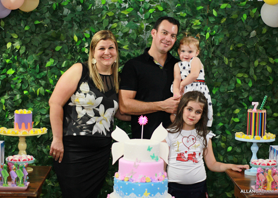 A psicóloga Ana Amélia Morandin Ranzani brindou a mudança de idade na segunda-feira, dia 11, junto ao marido Rodrigo e as filhas Luiza e Helena. Foto: Allan Gadiani