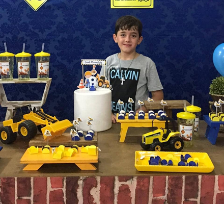 José Oswaldo Inácio Peixoto comemorou seu 9º aniversário no sábado, dia 9, junto aos pais Gisele e Oswaldo, amigos da escola D. Pedro, familiares e amigos no espaço Pipoca Doce decorado com o tema Máquinas. Foto: Arquivo Pessoal