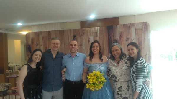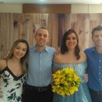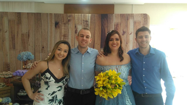 A psicopedagoga Jéssica Fermoselli Moneda celebra a chegada dos seus 27 anos neste domingo, dia 17, recebendo o carinho dos pais Sandra e Gervásio, do irmão Leonardo e do noivo Diego. Foto: Arquivo Pessoal