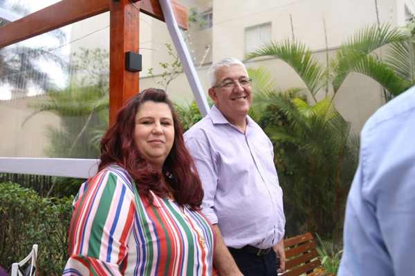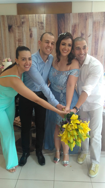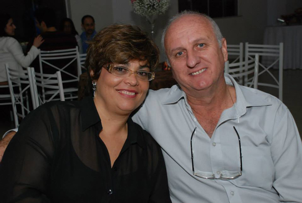 A psicóloga Elisângela Candido Eugênio brinda a mudança de idade na terça-feira, dia 19, quando recebe os cumprimentos do noivo João, de toda a família e amigos. Foto: Arquivo Pessoal