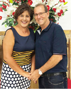 Os professores de educação física Marilena Romano Baizi e Sérgio Fernando Baizi celebraram 29 anos de união matrimonial no sábado, dia 16, quando receberam as bençãos do padre José Carlos e o carrinho especial dos filhos, netas, bisneta, nora, genros, demais familiares e amigos. Foto: Arquivo Pessoal