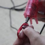 – Coloque um pingo de cola quente na base maior de cada pétala e juntar as pontas. Fazer isso nas cinco pétalas