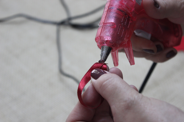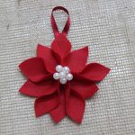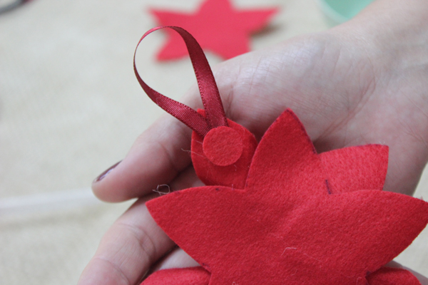 – Em seguida, colar as pontas da fita e colar a fita atrás da flor, arrematando com um pequeno círculo de feltro