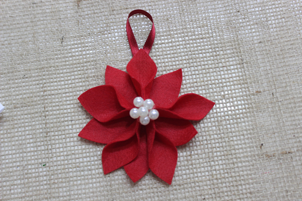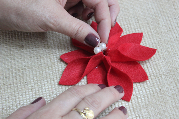 – Cole uma pérola em cada pétala e uma no meio, formando um miolo