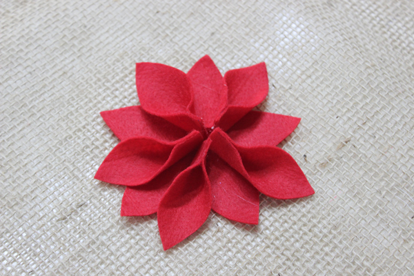 – Cole cada pétala na base da flor intercalando com as pontas da base
