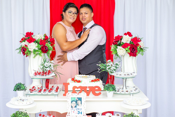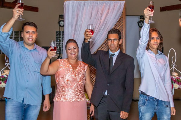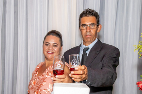 Eliene Vieira da Silva e Flávio Antônio da Silva celebraram 25 anos de união matrimonial no sábado, dia 11, junto aos filhos João Vitor e David, aos familiares e amigos no salão de festas da igreja São Benedito. Foto: Visualize