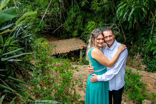 Julice Barreto da Silva e Pedro Gabriel da Silva se casaram na sexta-feira, dia 17, em cerimônia realizada na chácara Pedacinho do Céu, contando com a presença de seus filhos Ana Clara e Pedro Lucas. Julice é filha de Vicentina das dores Barreto e Luís Paulo da Silva, e Pedro é filho de Leonor dos Reis de Souza da Silva e Fernando da Silva. Foto: Visualize