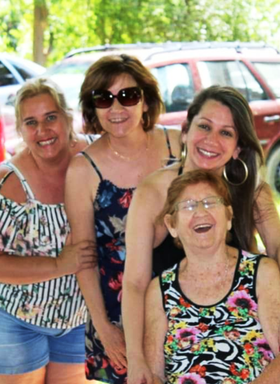 A psicóloga Cláudia H. Bertoli Monteiro brinda a mudança de idade na quarta-feira, dia 29, ladeada pelo carinho do marido dr. Paulo, dos filhos Mariana e Vinícius, da neta Manuela e do genro Davi. Foto: Arquivo Pessoal