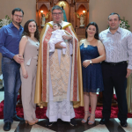 Felipe Harlei Malaguti Gonçalves, filho de Ana Virgínia Malaguti Gonçalves e Tiago Harlei Gonçalves, recebeu o sacramento do batismo em cerimônia realizada no último domingo, dia 19, na Igreja Matriz de Nossa Senhora Aparecida pelos padres Luís Antônio Penna e Antônio José Carossi, tendo como padrinhos Aline de Freitas Milan e Carlos Augusto Milan. Felipe é neto de Sirlei Mari Penna Malaguti, Mário Lúcio Malaguti, Aparecida das Dores Gonçalves e Cláudio Harlei Gonçalves. Foto: Falcão Foto & Arte