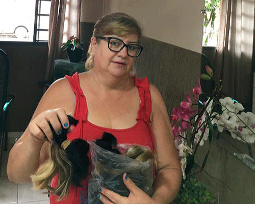 Em um ato de amor e solidariedade ao próximo, a cabeleireira Cristina Henrique realizou mais uma coleta de mechas de cabelo para serem utilizadas na confecção de perucas para pessoas em tratamento contra o câncer.