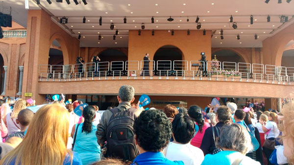 As integrantes dos terços foram recebidas na tribuna Papa Bento XVI pelo missionário redentorista irmão Alan, pelo padre Eduardo Ctalf reitor do santuário, pela apresentadora Jéssica Fernandes do programa Bênção da Noite e as cantoras de Deus.