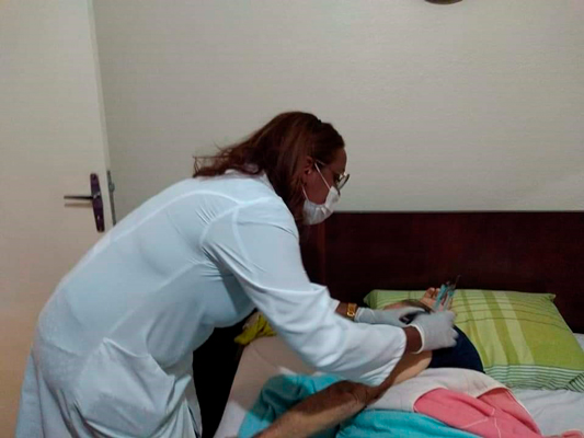 Os enfermeiros responsáveis pelas Unidades de Saúde de Vargem também realizaram a vacinação em idosos acamados ou com dificuldades de locomoção, em domicílio.