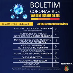 Nesta quarta-feira, dia 15 de abril, Vargem Grande do Sul segue sem nenhum caso confirmado da doença.
