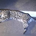 Por solicitação do Policiamento Rodoviário de Casa Branca, a equipe da Polícia Militar Ambiental composta pelos cabos Elias e Maurício foi acionada para resgatar uma jaguatirica, que havia sido atropelada e se encontrava machucada às margens da rodovia.