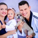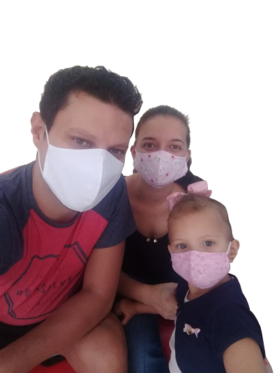 A costureira Mariana Cristina Spanholo Ramos, de 28 anos, continua trabalhando em casa, principalmente com a confecção de máscaras neste momento. Para seguir com o trabalho, a mãe recebe a ajuda do marido Ricardo Henrique Gonçalves Ramos, operador de máquina e professor de taekwondo, de 33 anos, para cuidar da filha Alicia Cristina Ramos, de 1 aninho e 7 meses.