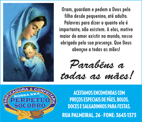 Faleceu a sra. Shirley Ribeiro Sanches, no dia 30 de abril, aos 82 anos de idade. Ela deixa os filhos Rodrigo, Décio, Luís Antônio, Sheila e Sandra a irmã Shirlene, netos e bisnetos. Shirley foi sepultada no dia 1º, no Cemitério Parque das Acácias.