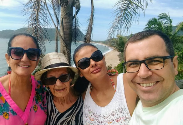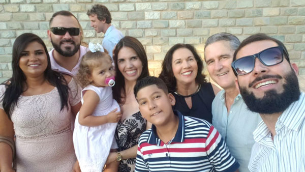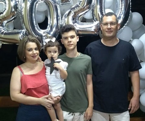O professor Guilherme J. Andrade brinda a chegada da nova idade na quarta-feira, dia 15, quando recebe as felicitações da esposa Jô, dos filhos Lucca e Helena. Foto: Arquivo Pessoal