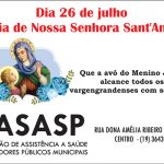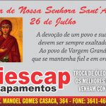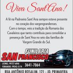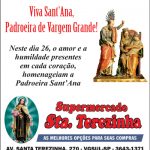 Neste dia, a celebração tem início às 9h, com a Santa Missa presidida pelo padre Paulo Valim. Em seguida, às 10h, haverá a carreata em louvor à Sant’Ana. Para finalizar a celebração, às 16h haverá a Missa Solene de Sant’Ana, presidida pelo Bispo Diocesano Dom Antônio Emídio Vilar.
