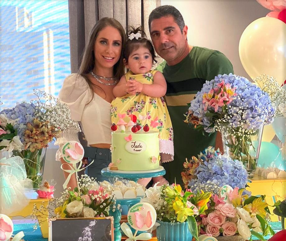 O primeiro aniversário de Jade Aliende Amar foi comemorado na última segunda-feira, dia 20, quando recebeu os mimos e paparicos dos pais Andréa e Jeffy, dos padrinhos Paula e Márcio, dos avós e toda a família. Foto: Arquivo Pessoal