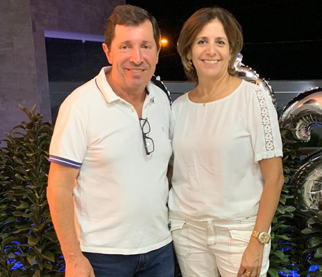 Ângela Maria Biscaino de Paulo brinda a passagem de seu aniversário na quinta-feira, dia 30, quando recebe o abraço do marido João Di Paulo, do filho João Marcos, dos pais Olinda e Pedro e demais familiares. Foto: Arquivo Pessoal