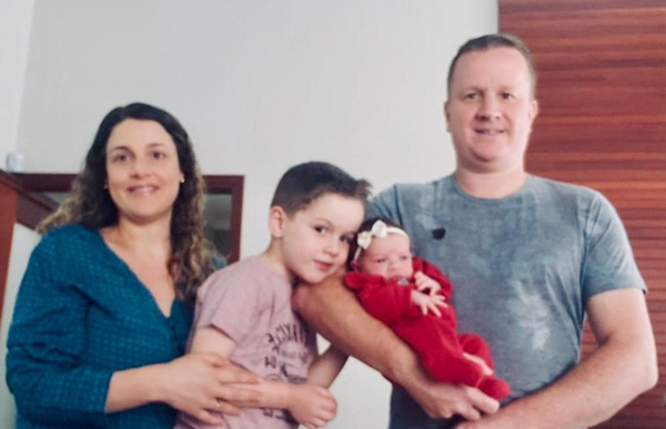 Dayane Leal Lazarette brinda a passagem de seu aniversário na quinta-feira, dia 30, junto ao marido João Carlos e a filha Manuela. Foto: Arquivo Pessoal