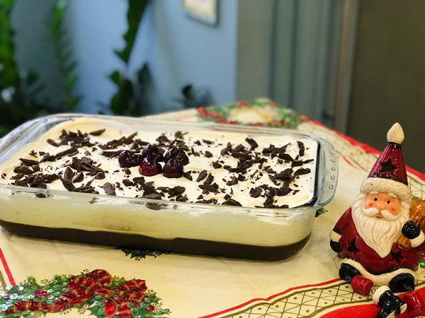 Montagem: Massa folhada, brigadeiro, nozes, sorvete e por último o chantilly. Decorar com raspas de chocolate e cerejas