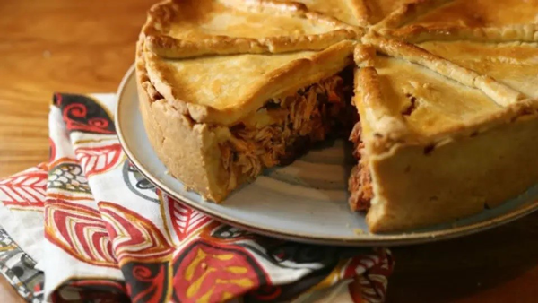 Modo de fazer: Refogue o frango com os temperos. Acrescentar 1 lata de creme de leite. Misturar os ingredientes da massa e dividir em 2 partes iguais, forrar a forma, rechear e cobrir com o restante da massa. Leve para assar.