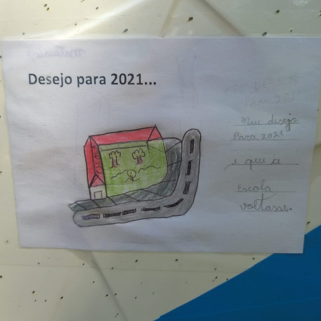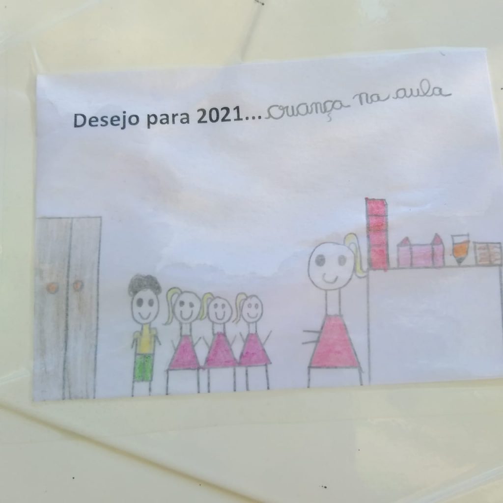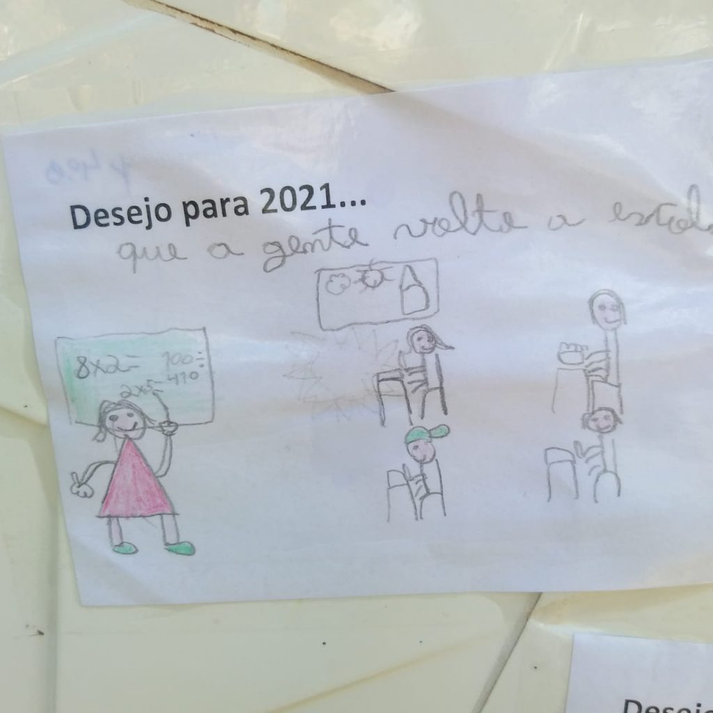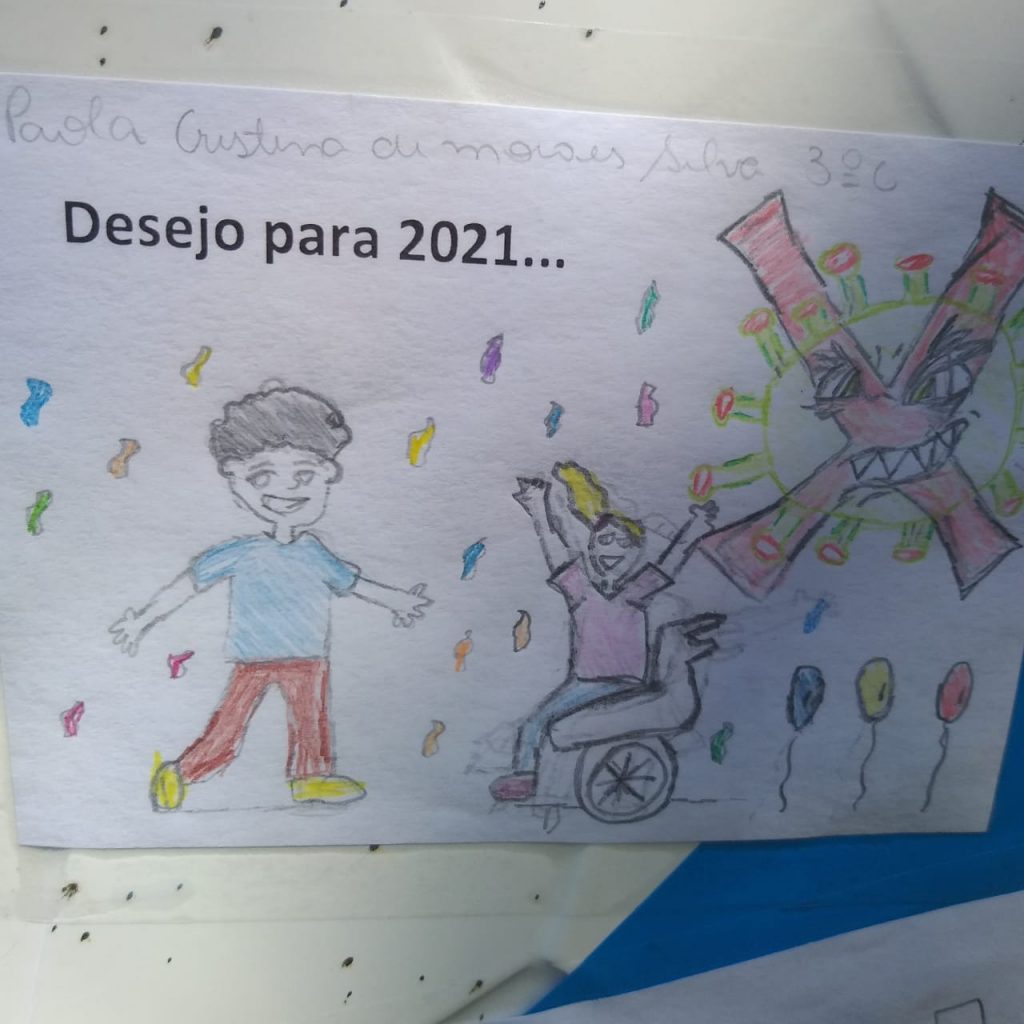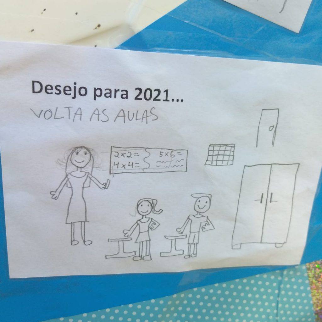 “Como neste ano fomos privados da convivência entre, profissionais escolares e os alunos, percebemos no decorrer do ano que a saudade de ficar juntos, da rotina atribulada do dia a dia, dos carinhos e até do barulho, era recíproca. Por isso, pensamos em um modo de fazer com que eles pudessem manifestar esse sentimento através do desenho. Então, propusemos aos alunos do 3º ao 5º ano que desenhassem sobre o que desejavam para 2021”, explicou a diretora Adriana Gambaroto Marti.