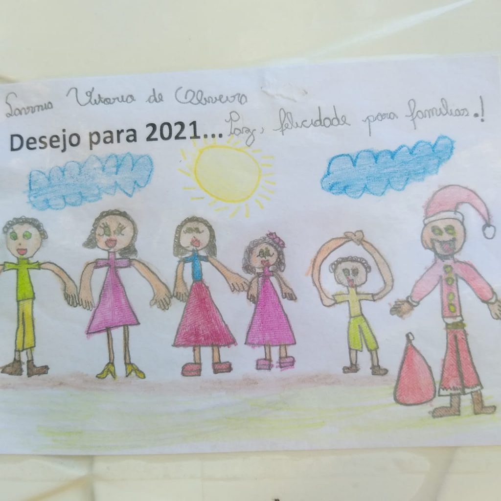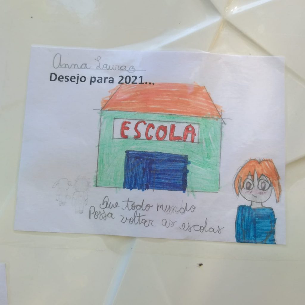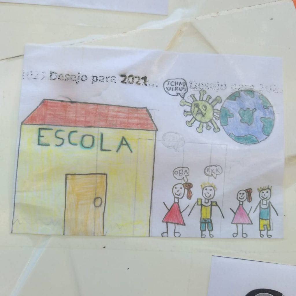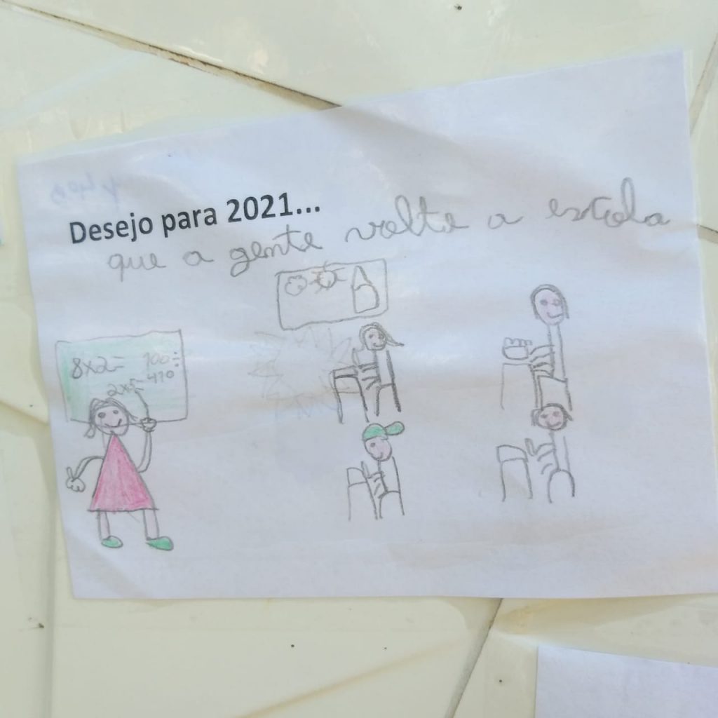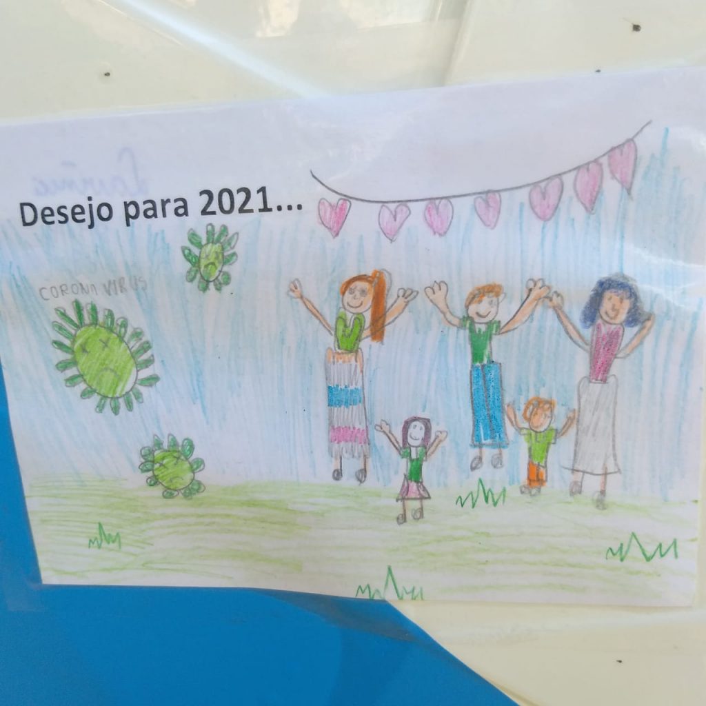 “Como neste ano fomos privados da convivência entre, profissionais escolares e os alunos, percebemos no decorrer do ano que a saudade de ficar juntos, da rotina atribulada do dia a dia, dos carinhos e até do barulho, era recíproca. Por isso, pensamos em um modo de fazer com que eles pudessem manifestar esse sentimento através do desenho. Então, propusemos aos alunos do 3º ao 5º ano que desenhassem sobre o que desejavam para 2021”, explicou a diretora Adriana Gambaroto Marti.