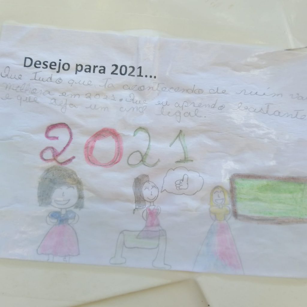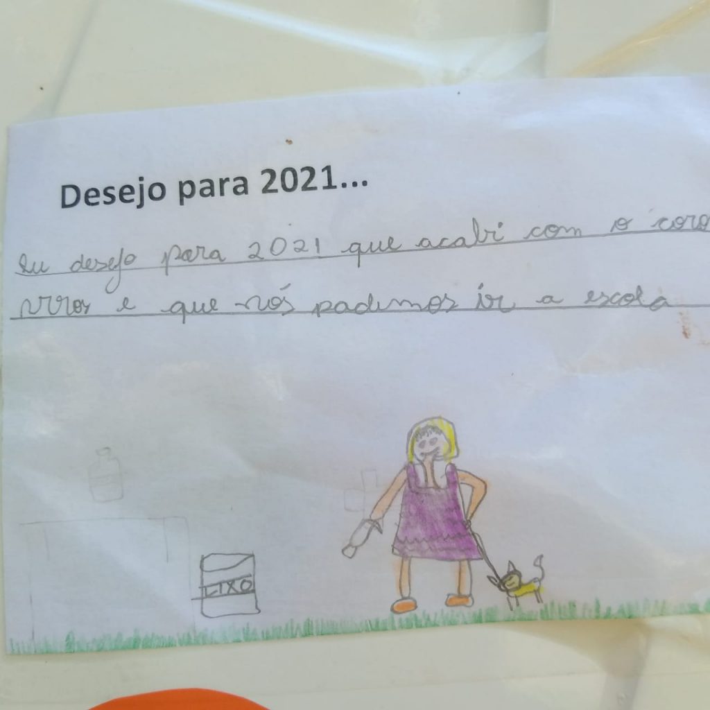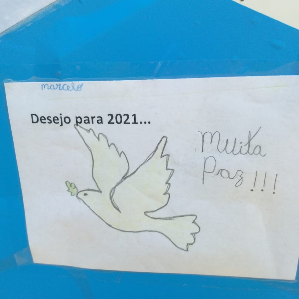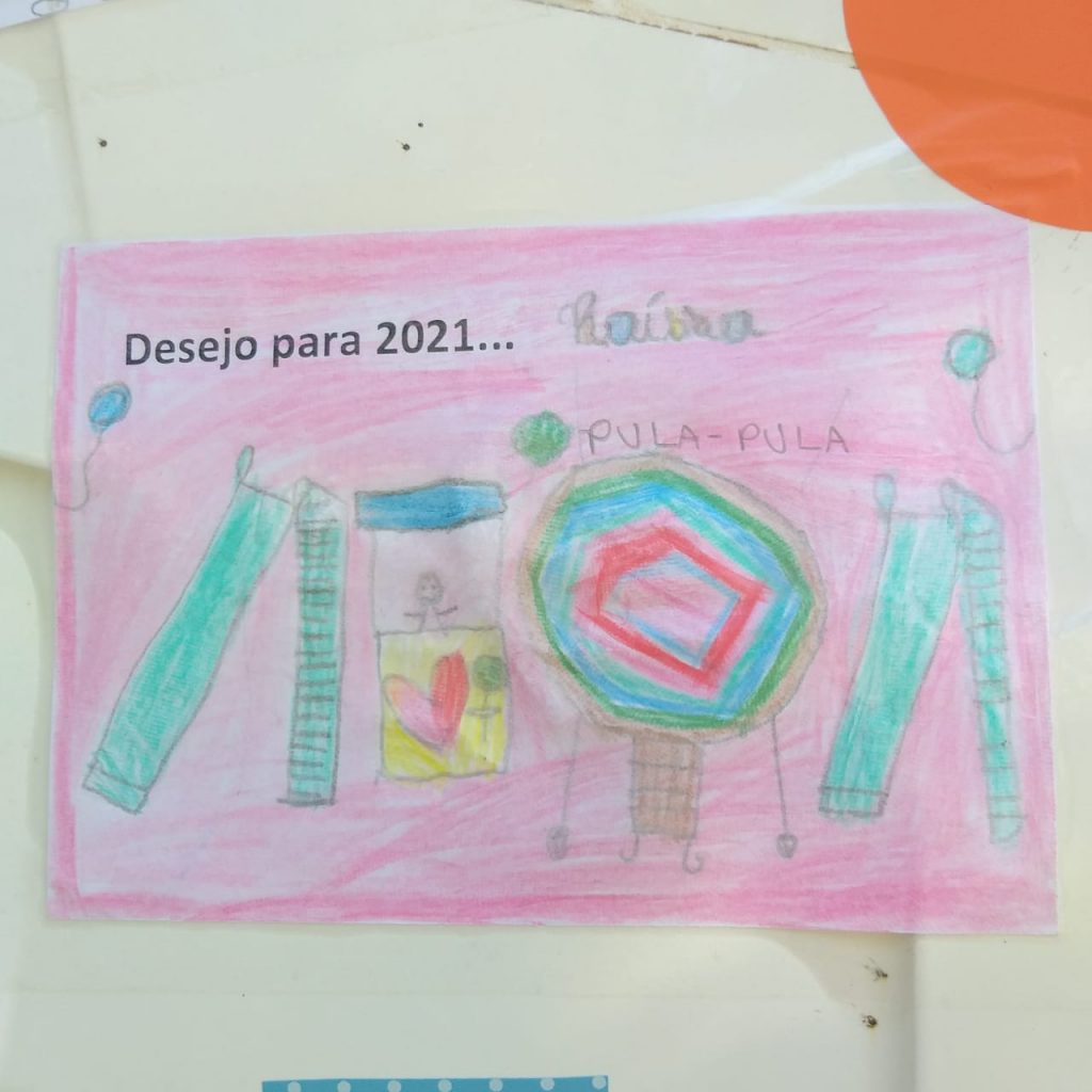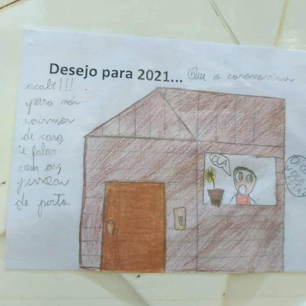 “Como neste ano fomos privados da convivência entre, profissionais escolares e os alunos, percebemos no decorrer do ano que a saudade de ficar juntos, da rotina atribulada do dia a dia, dos carinhos e até do barulho, era recíproca. Por isso, pensamos em um modo de fazer com que eles pudessem manifestar esse sentimento através do desenho. Então, propusemos aos alunos do 3º ao 5º ano que desenhassem sobre o que desejavam para 2021”, explicou a diretora Adriana Gambaroto Marti.