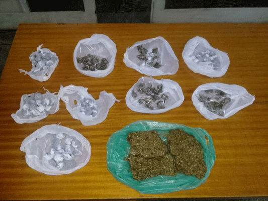 Durante patrulhamento, os PMs avistaram o suspeito saindo de um terreno. Ele foi revistado e os policiais encontraram com ele, uma lanterna. Próximo de um muro, os policiais localizaram uma sacola com 136 porções de maconha prontas para venda pesando um total de 285 gramas e um tijolo de maconha pesando 310 gramas.