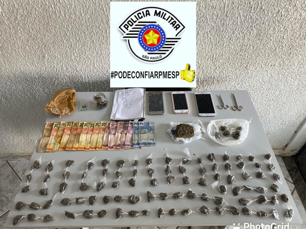 Na quarta-feira, dia 6, dois rapazes foram presos com 100 porções de droga e um tablete de maconha no Jardim Dolores. A equipe composta pelo cabo Thomaz e soldado Amauri, junto a equipe dos soldados Emiliano e Prado CB PM Thomaz e dos cabos Cipriano e Rodrigo, realizou a prisão e apreensão.