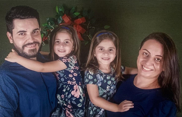 O bancário Marcelo Henrique Ferreira brinda a chegada da nova idade neste sábado, dia 5, junto a esposa Rúbia e as filhas Helena e Valentina. Foto: Arquivo Pessoal