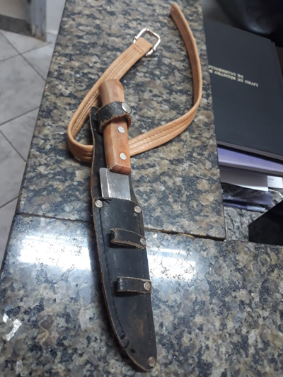 O homem ficou agitado e tirou uma faca de dentro da mochila, alegando que “para furar alguém não custaria nada” e fugiu do local. Quando a equipe da GCM chegou no Centro de Saúde, o suspeito não estava mais lá. A equipe saiu em sua busca e encontrou o suspeito cerca de 200 metros do local. Ele autorizou a revista, sendo localizada a faca citada pelas servidoras do Centro de Saúde.
